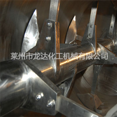 犁刀混合機(jī)由圓筒體、傳動機(jī)構(gòu)、犁刀、飛刀四部組成;工作時,犁刀做圓周運動,物料被犁刀刀面分流成兩個方向形成雙向物料流,與兩側(cè)犁刀分流過來的物料相互交叉形成對流,當(dāng)物料流經(jīng)高速飛刀時又被高速飛刀葉片剪切和拋灑,從而在較短時間內(nèi)達(dá)到均勻混合。本機(jī)的混合精度高,混合時不產(chǎn)生離析,尤其對于容易團(tuán)聚的物料,可以起到解聚和打散的作用。